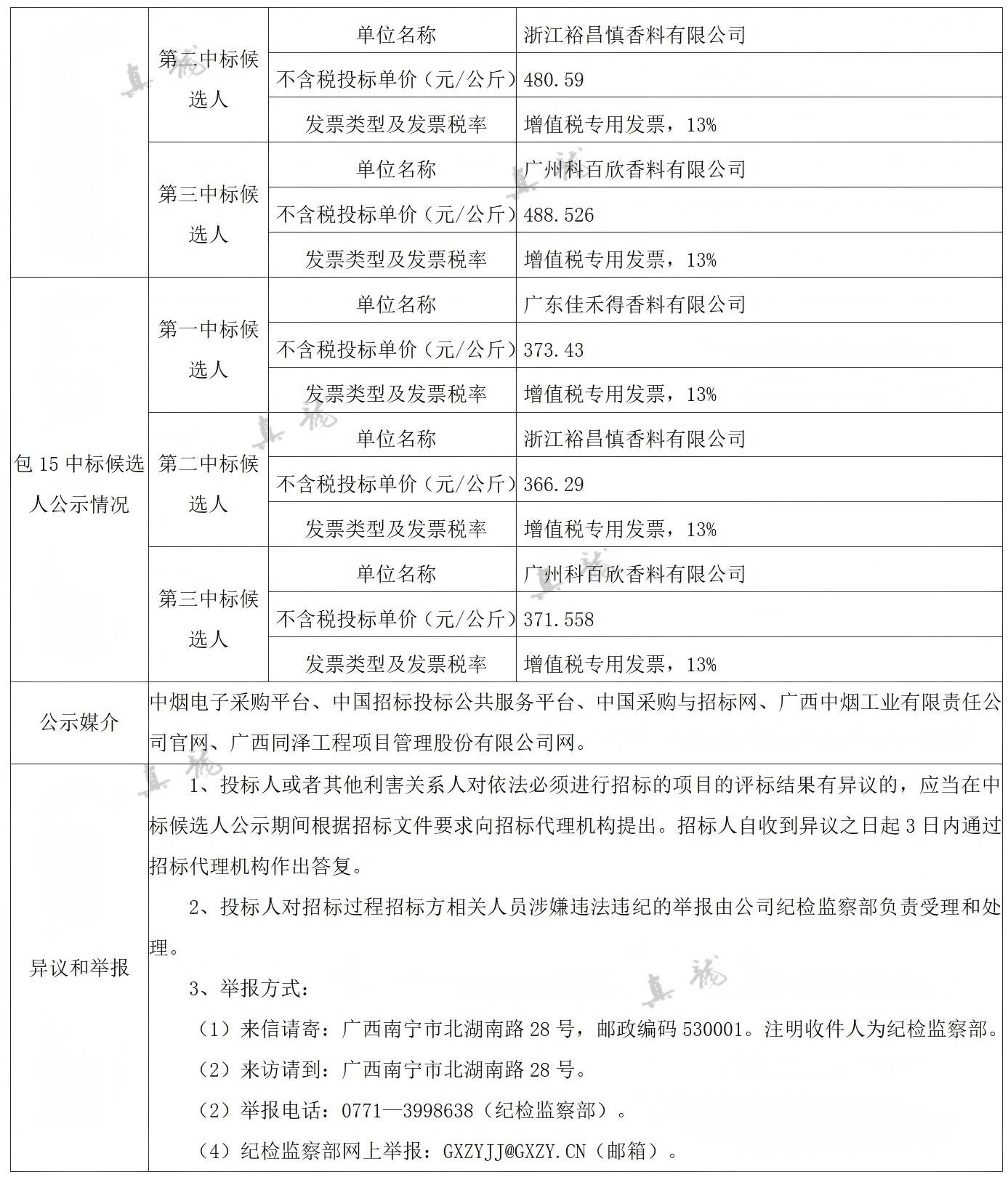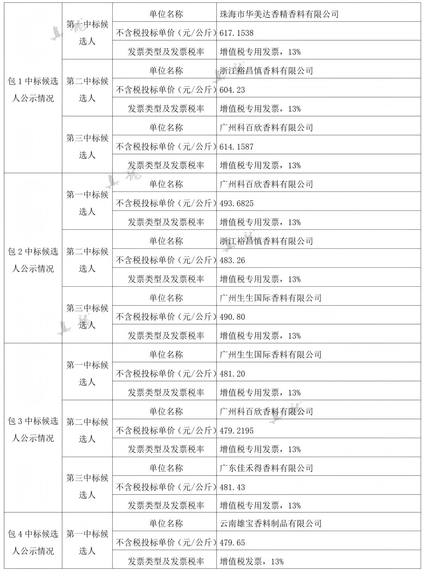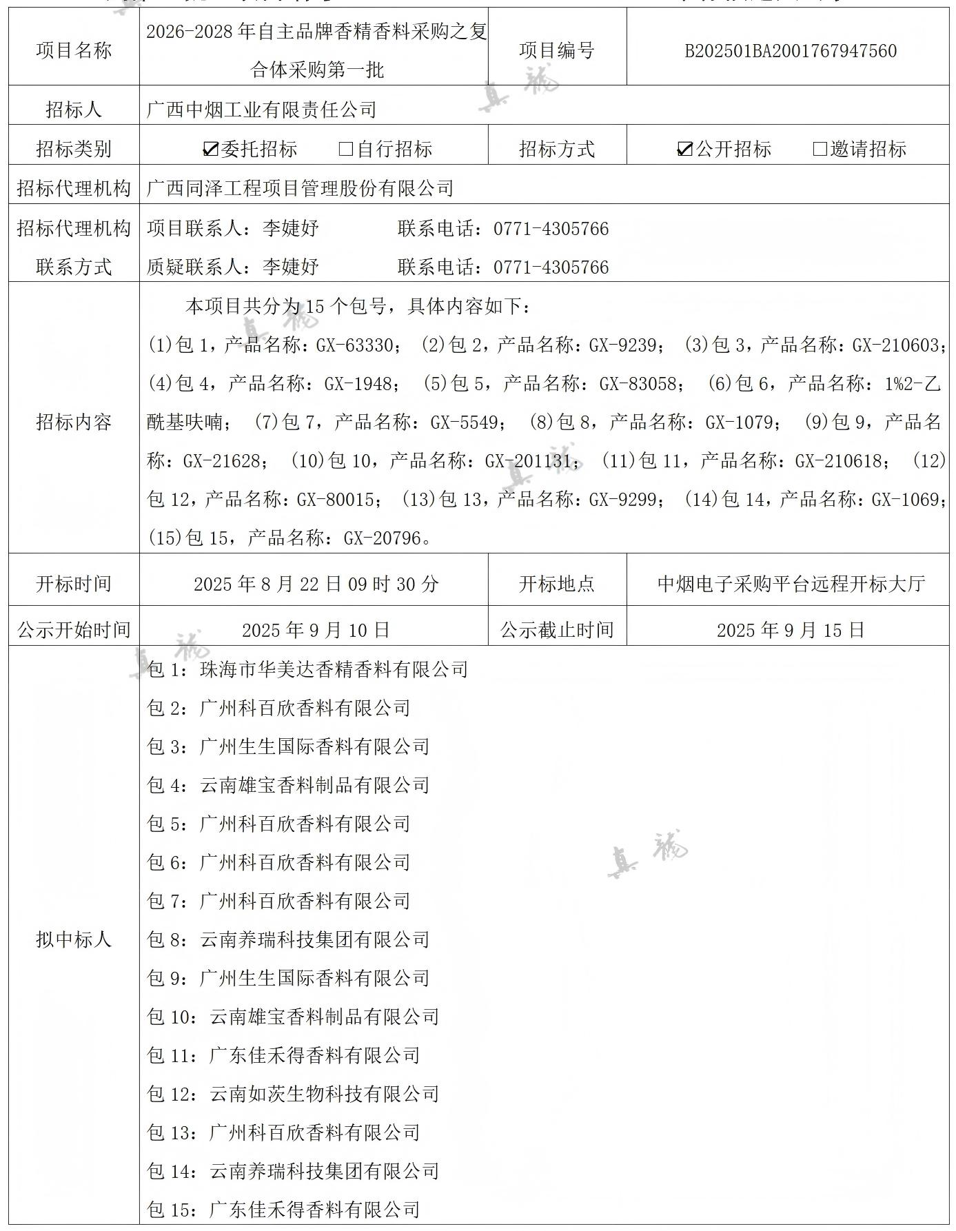 廣西中煙工業(yè)有限責(zé)任公司2026-2028年自主品牌香精香料采購(gòu)之復(fù)合體采購(gòu)第一批(項(xiàng)目編號(hào):B202501BA2001767947560)中標(biāo)候選人公示