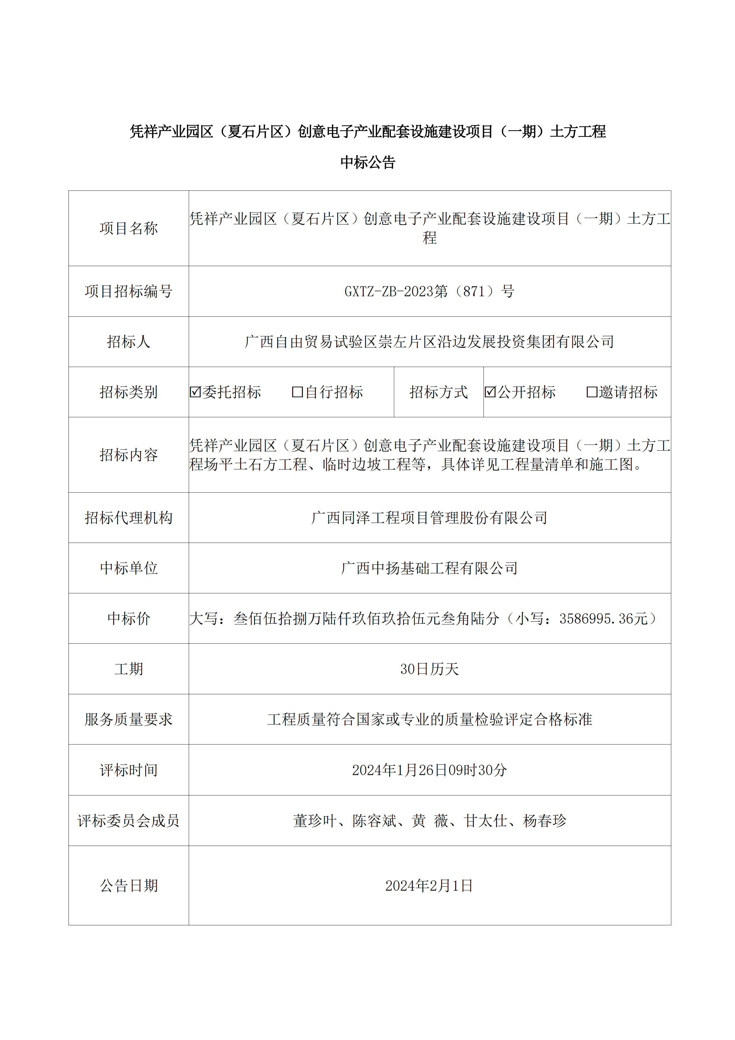 憑祥產(chǎn)業(yè)園區(qū)(夏石片區(qū))創(chuàng)意電子產(chǎn)業(yè)配套設(shè)施建設(shè)項目(一期)土方工程中標(biāo)公告